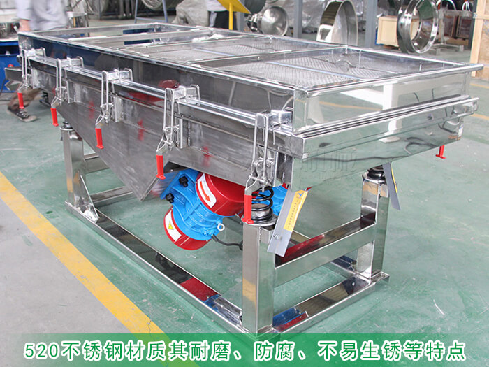 質(zhì)量好不好就要看看材料的選擇是不是好的,新鄉(xiāng)大漢機械的不銹鋼直線篩的,材質(zhì)使用的都是520不銹鋼材質(zhì)。其不僅擁有耐磨的性質(zhì),還有防腐,不易生銹的特點。