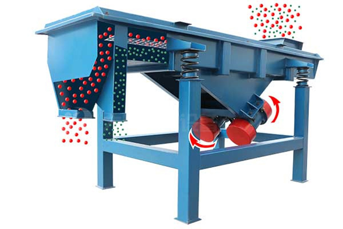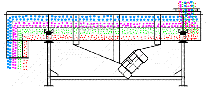 直線型振動(dòng)篩兩電機(jī)軸相對篩面有一傾角,在激振力和物料自重力的合力作用下,物料在篩面上被拋起跳躍式向前作直線運(yùn)動(dòng),從而 達(dá)到對物料進(jìn)行篩選和分級的目的。可用于流水線中實(shí)現(xiàn)自動(dòng)化作業(yè)。