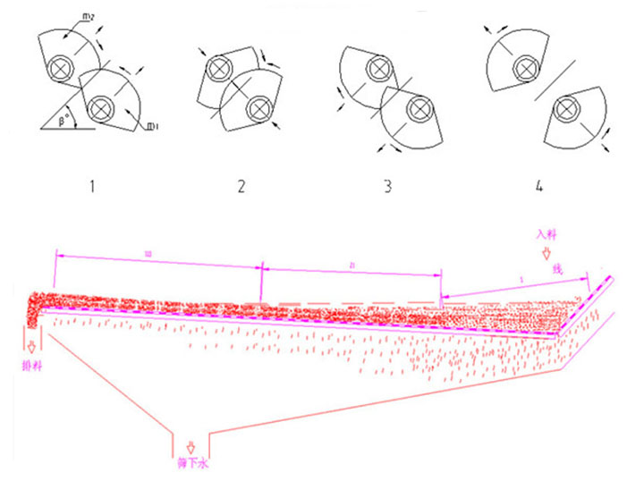 1,為了適應(yīng)不同尾礦性質(zhì)差別,本篩振幅可調(diào),方法是調(diào)整主副偏心塊夾角,從而滿足不同性質(zhì)尾礦的脫水效果?!?/p>